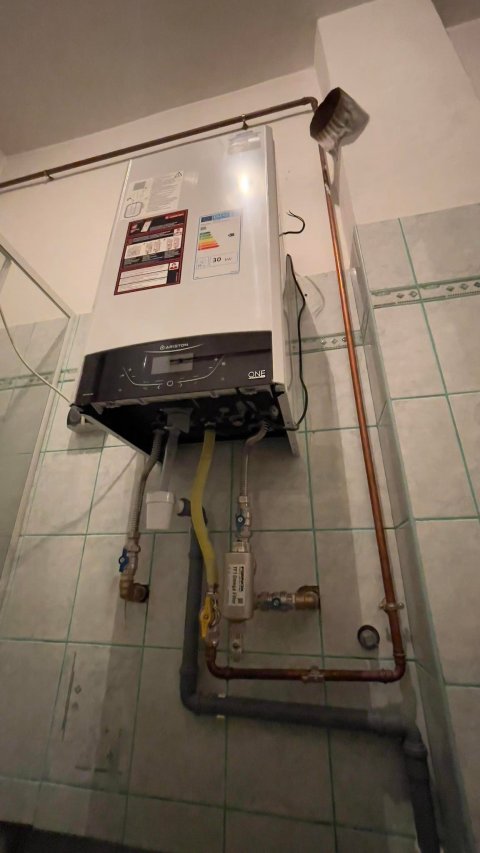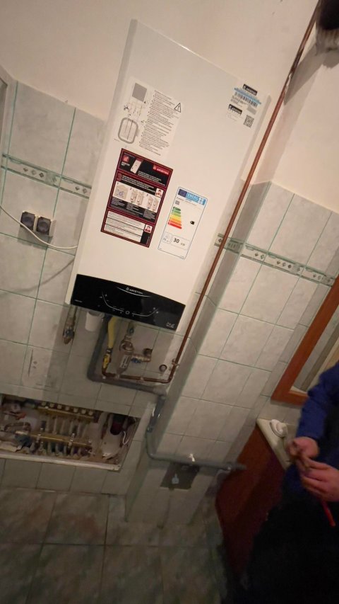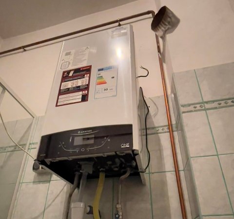 22. kerületben cseréltünk le egy nyílt égesterű 35 kW-os FÉG kazánt egy új kondenzációs gázkazánra. Hőszükséglet számítások után kiderült, hogy egy 30 kW-os Ariston fűtőkazán is el tudja végezni tökéletesen a feladatot.