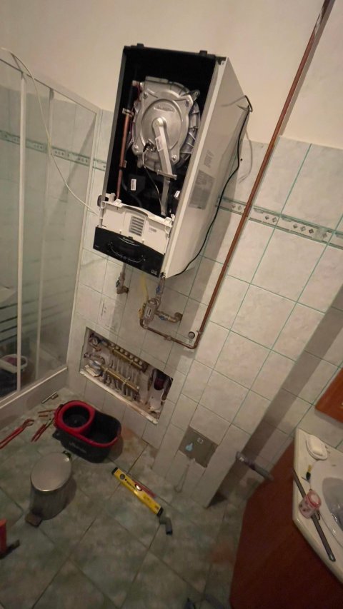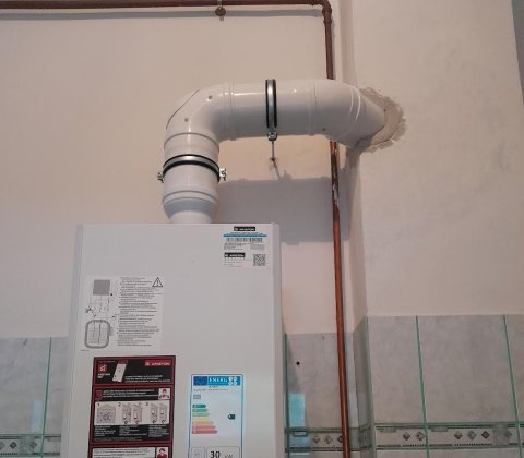 Ez a fogyasztás és a moduláció szempontjából is fontos, ugyanis sokkal kevesebb gázt fog fogyasztani a készülék. A kondenzvizet gravitációsan el tudtuk vezetni a kozeli mosdó szifonjába, ahová egy bűzzárat is beépítettünk, hogy semmiféle kellemetlen szag ne jöhessen ki. 5 órán belül elkészültünk a komplett kazáncserével, amibe a kéménybélelés, az elektromos szerelés és a garanciális beüzemelés is beletartozott.