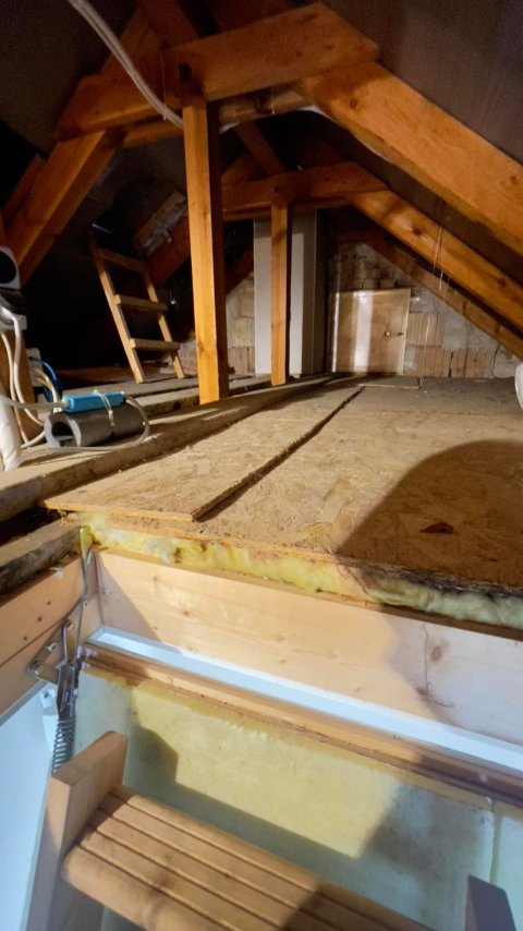 A kondenzvíz elvezetésére alkalmas poharas szifon már készen várta az új kazán kondenzvizét. A vezérlést egy Saunier Duval Exacontrol 7 vezetékes termosztát végzi. A füstgáz elvezetést a régi kacskaringós megoldás helyett függőlegesen vittük a tető fölé. Be kellett építeni egy tetőkibúvó ablakot és 1 db tetőjárda elemet. A füstgáz cső végigment a padlástéren, amit a szabályoknak megfelelően egy tűzálló gipszkartonnal vettünk körbe. A megrendelő későbbi visszajelzése alapján éves szinten 300 m3 gázt spórolt meg ezzel a cserével, így ez remek rezsicsökkentő megoldás lett számára.
